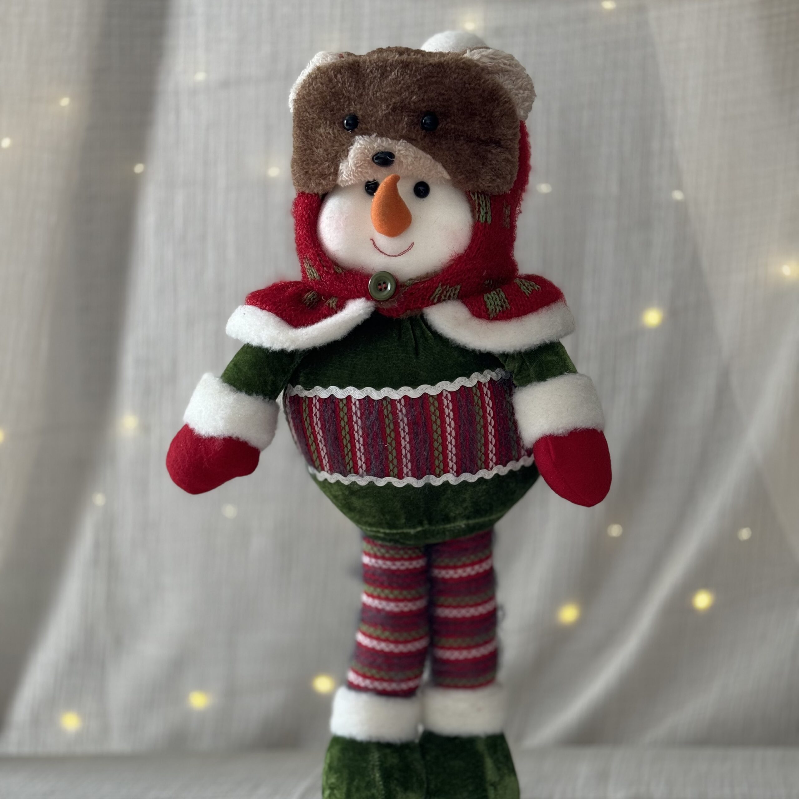 Spread holiday cheer with our charming Cute Snowman Decor Piece! Crafted from soft fabrics, this adorable snowman exudes a delightful and heartwarming appeal that adds a touch of whimsy to your seasonal decor. With its endearing design, this fabric snowman becomes a cheerful addition to your home, radiating festive spirit and joy. Perfect for tabletops or mantels, this lovable snowman brings a smile to everyone’s face during the holiday season.